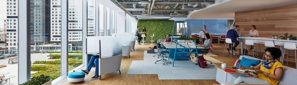 Adding acoustically absorptive materials improves this condition. Absorptive materials take many forms. Acoustical ceilings, acoustical wall panels and carpet are a few we all know. Acoustical ceilings seem to have become an unattractive alternative to many. The look of the exposed building lends a feel that is more in line with the brand of many occupiers. When ceilings and carpet are not a part of the design, it is the responsibility of the workplace design team to strategically add absorptive materials in other places.